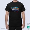 Unisex crew neck tshirt with chest print Toyota Supra image and upper back logo.